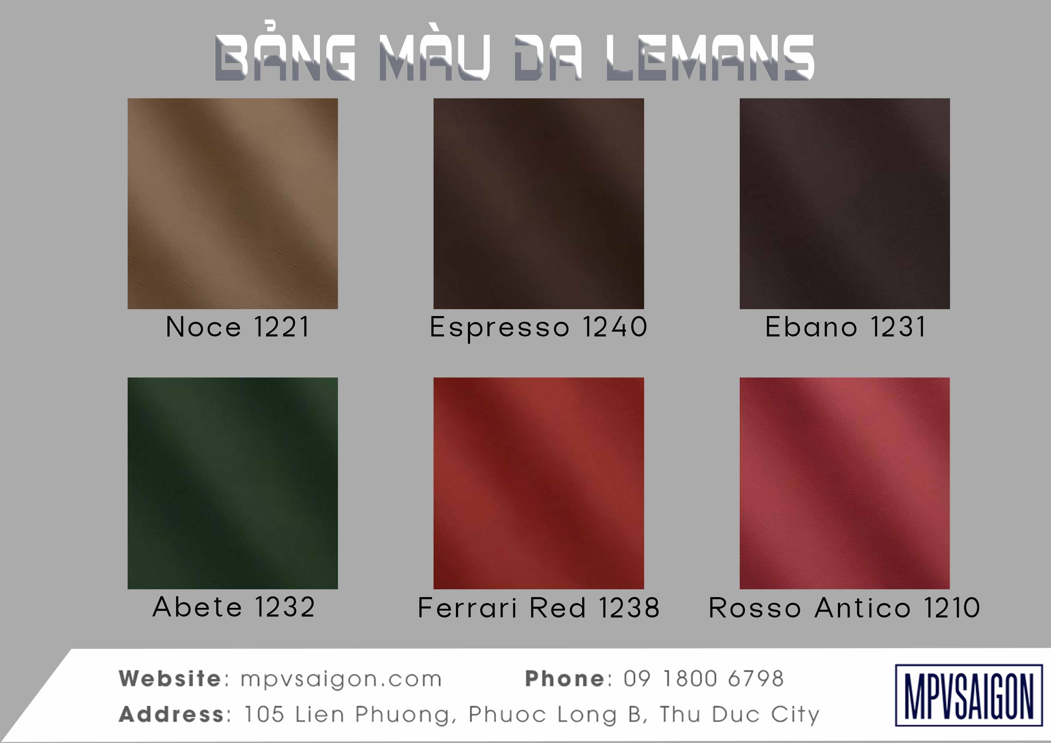 Liên hệ với chúng tôi để được tư vấn và báo giá chi tiết về các dịch vụ Bảng màu da Napa Ý Mastrotto Lemans nhập khẩu - MPVSAIGON