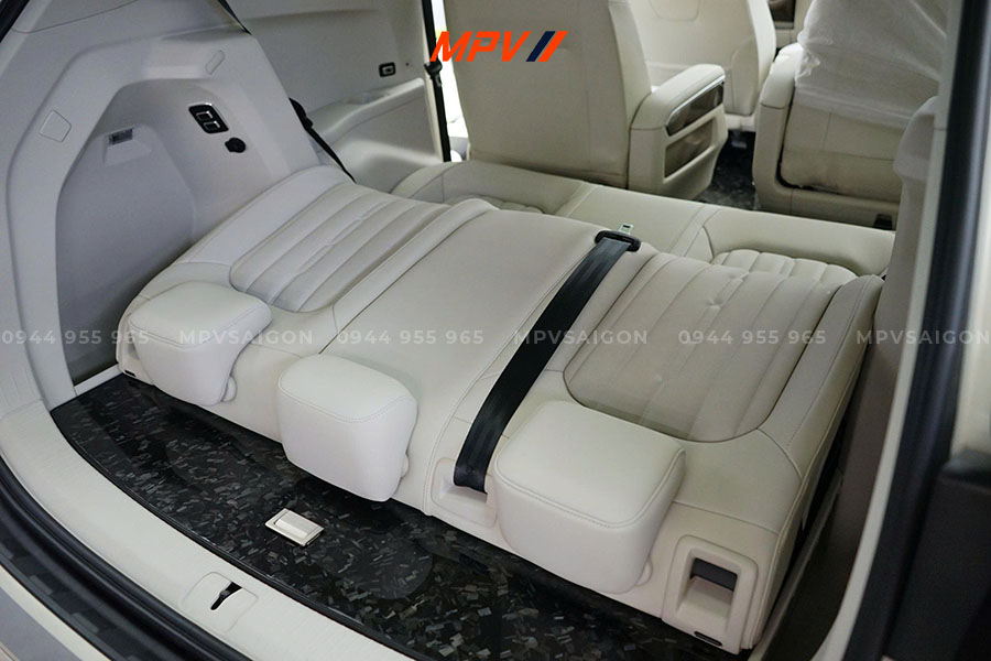 Khi xe dừng chờ hoặc nghỉ giữa hành trình, ghế có thể ngả thành giường để nằm thoải mái. Khung ghế được gia cố chắc chắn, mút êm hỗ trợ lưng tốt, đảm bảo an toàn trong các thao tác ngả – dựng ghế. MPVSAIGON luôn hướng dẫn khách cách sử dụng đúng chuẩn để đảm bảo an toàn tối đa cho cả gia đình.