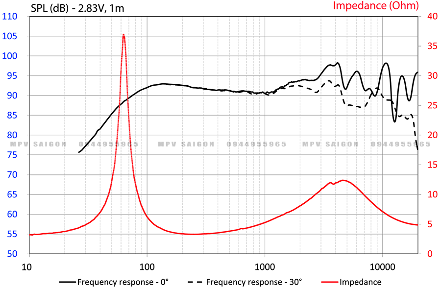 Độ nhạy: 93dB (2.83V/1m)