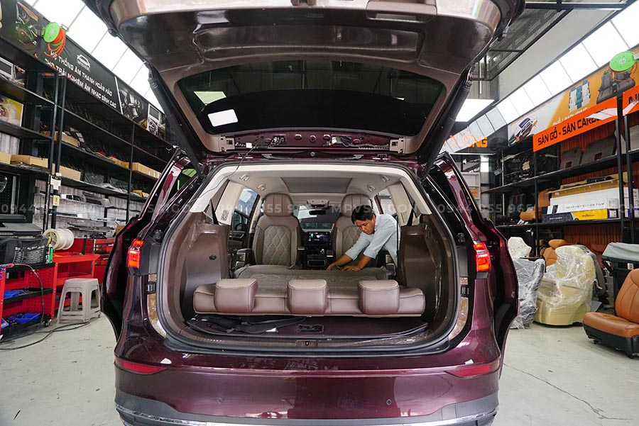 Ghế thương gia khi kết hợp với sàn gỗ tự nhiên, ốp bậc sáng logo Viloran và đèn viền ambient, tạo nên một khoang nội thất mang hơi hướng của những mẫu xe Maybach hoặc Alphard Executive Lounge. Sự đồng nhất về tông màu – từ nâu sậm, be hoặc đen bóng – giúp không gian trở nên hài hòa, sang trọng và cực kỳ thư giãn.