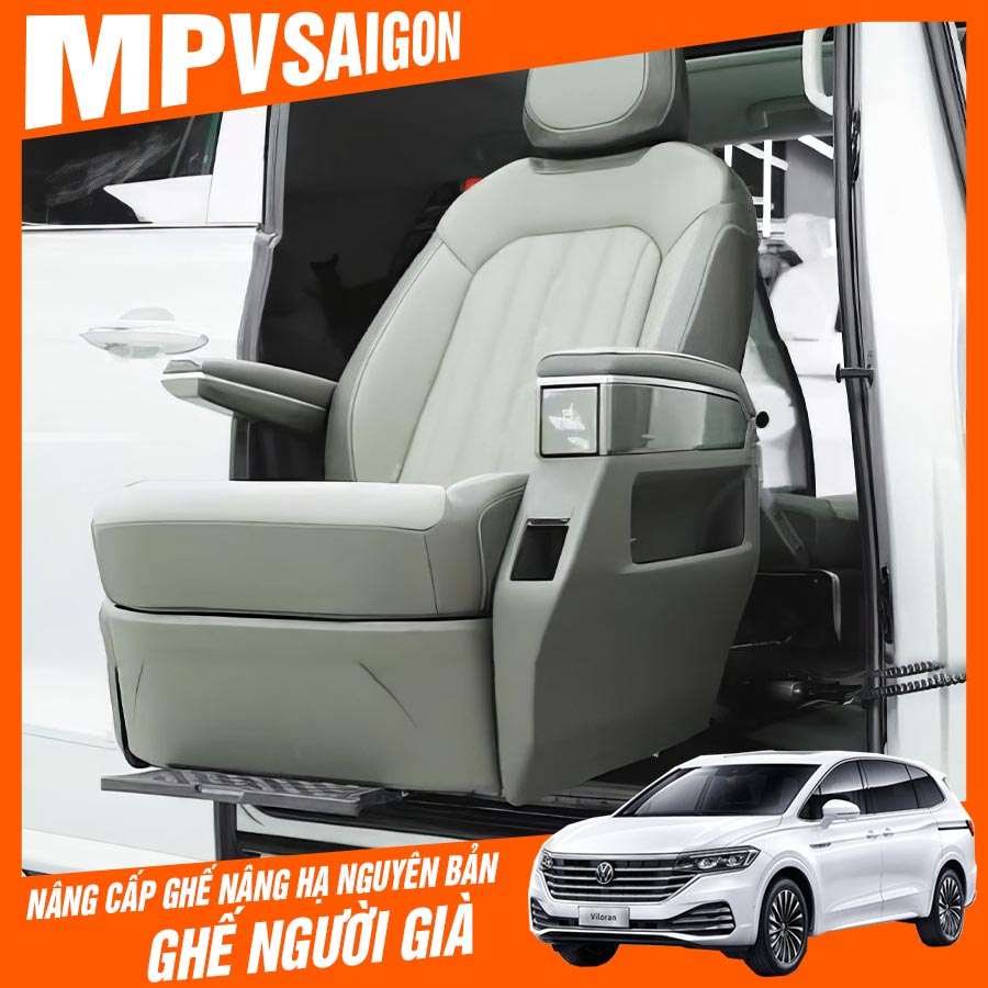 Ghế nâng hạ xoay là giải pháp hiệu quả giúp người già và người khuyết tật dễ dàng vào và ra khỏi xe mà không gặp khó khăn. Khi được lắp đặt trên xe Volkswagen Viloran, sản phẩm này không chỉ mang lại sự tiện lợi mà còn đảm bảo tính thẩm mỹ và an toàn. Ghế được điều khiển bằng điện qua bảng điều khiển bên cạnh ghế hoặc điều khiển từ xa, cho phép nâng lên và hạ xuống dễ dàng, hỗ trợ người sử dụng trong việc lên xuống xe.