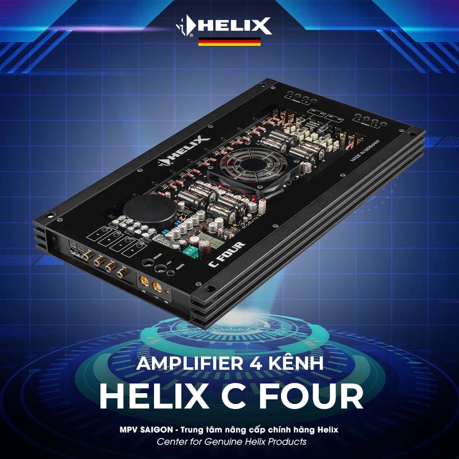 Amply 4 kênh Helix C Four được nhập khẩu từ Đức mà còn sản xuất tại nhà máy Audiotec Fischer, hứa hẹn chất lượng âm thanh audiophile kết hợp với công suất đầu ra ấn tượng.