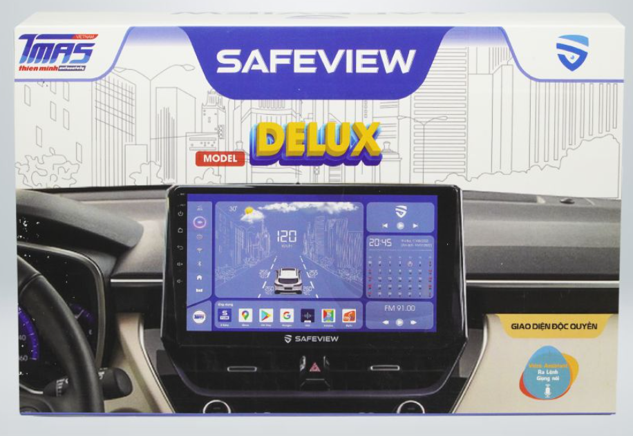 Màn hình android Safeview Delux được phân phối bởi TMAS Việt Nam kết hợp sản xuất cùng Safeview được nhiều tài xế lựa chọn để thay thế cho màn hình zin xe ô tô. Sở hữu đầy đủ công năng như một chiếc máy tính bảng được sử dụng dễ dàng, mượt mà.