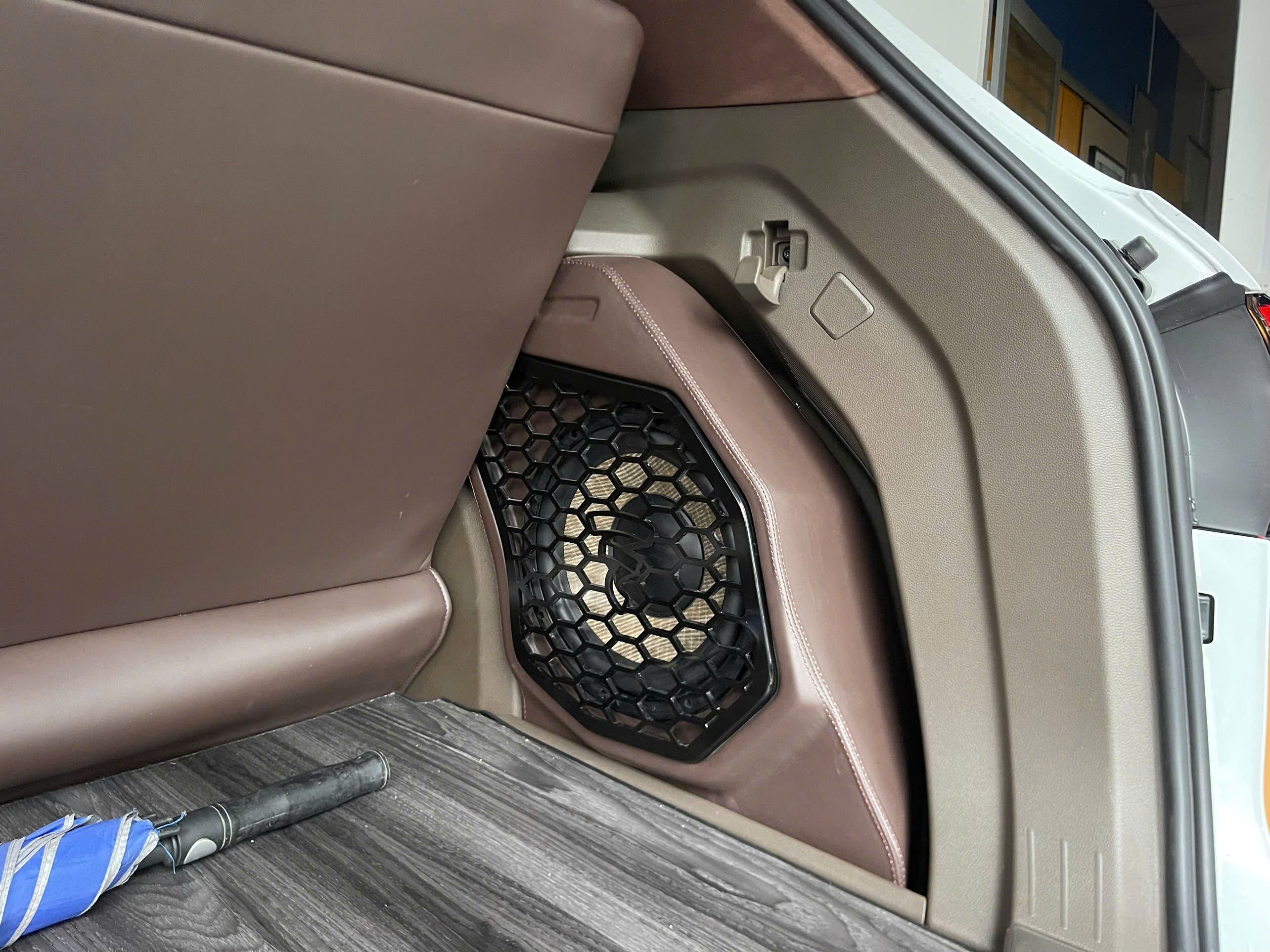 Vách ngăn và màn hình giải trí lớn: Biến khoang sau thành văn phòng mini hoặc rạp chiếu phim di động.