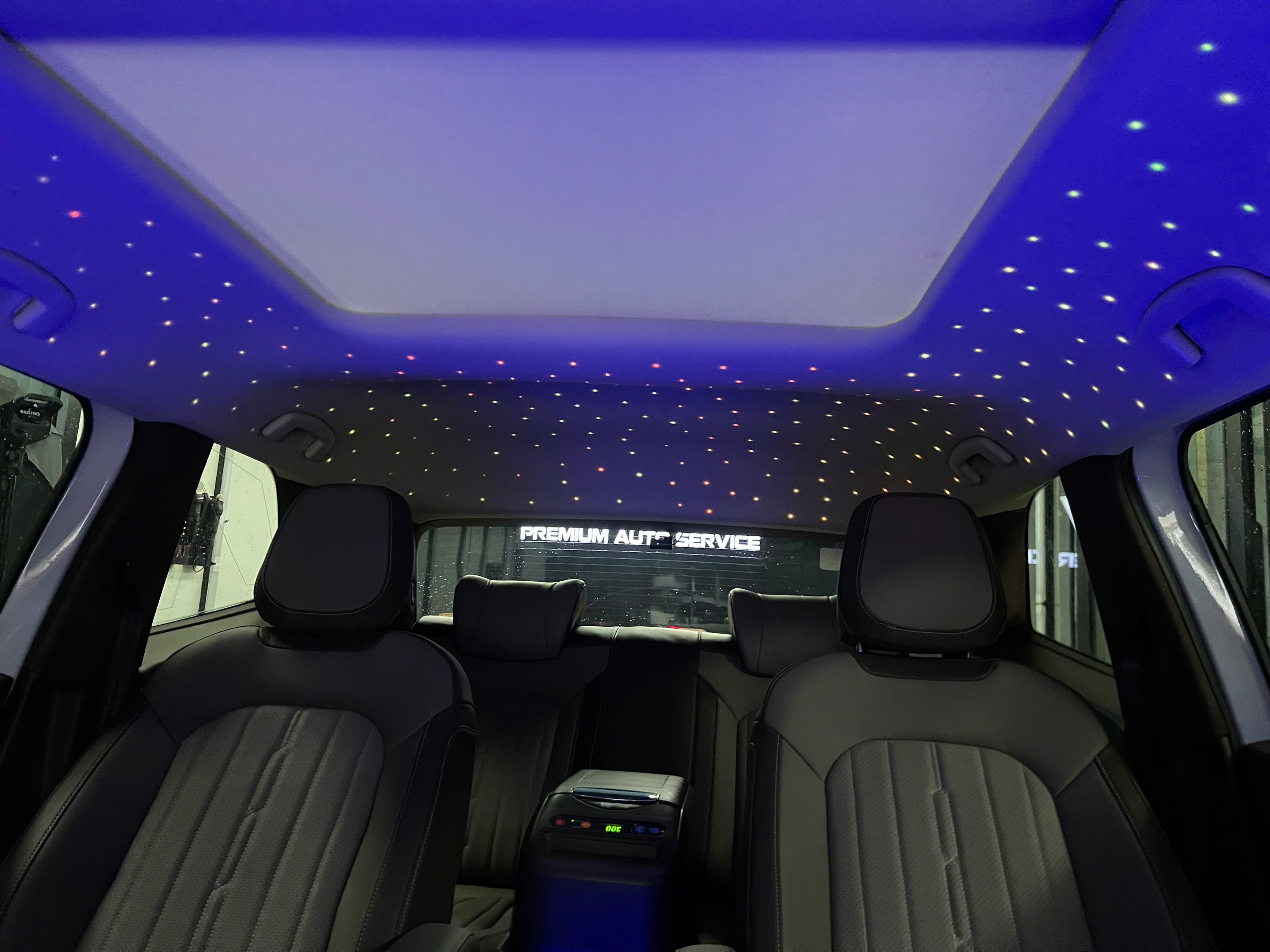 Trần da Alcantara kết hợp ánh sao LED: Biến trần xe thành bầu trời đêm thu nhỏ, mang đến cảm giác thư giãn tuyệt đối.
