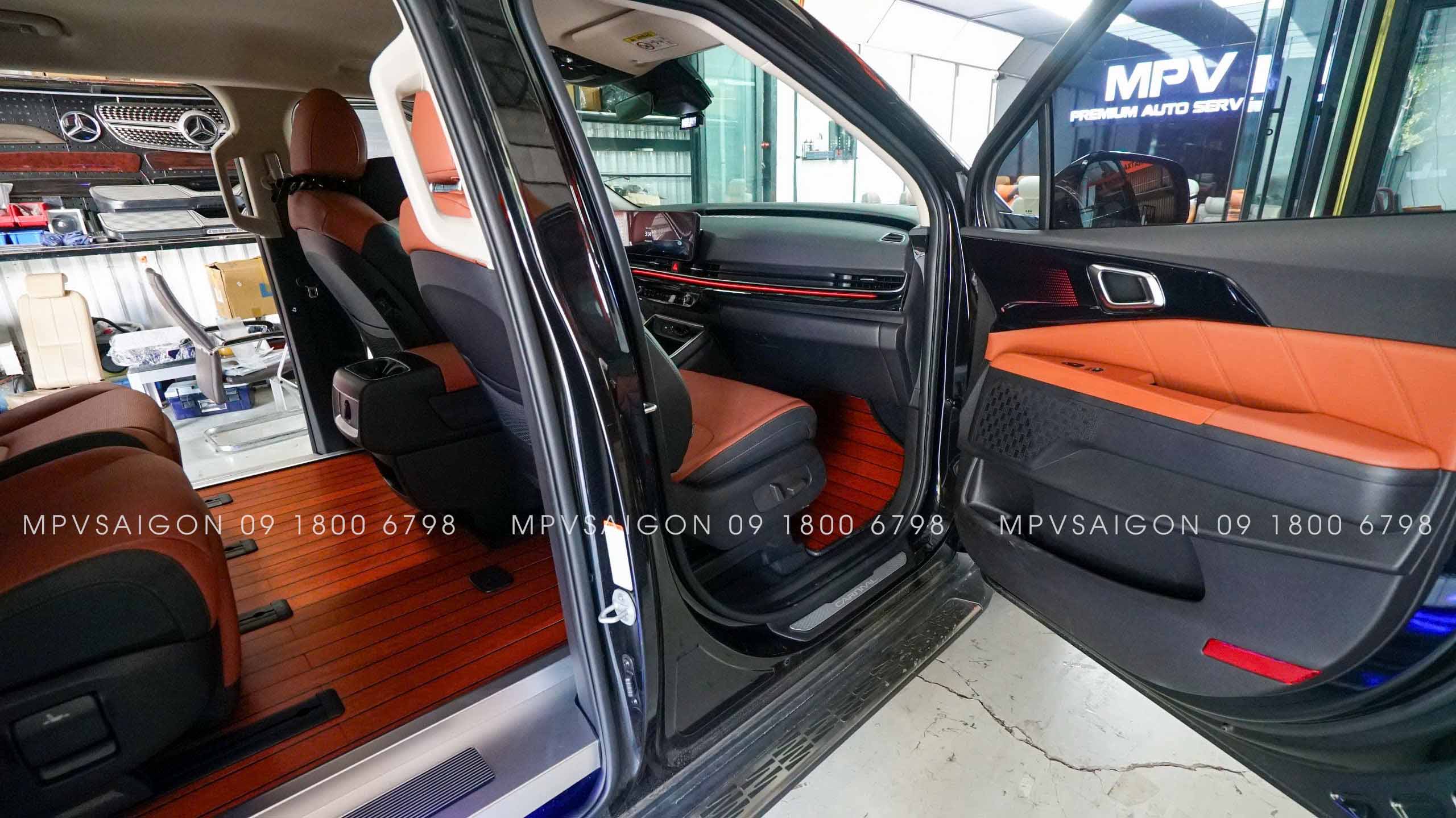 Hình ảnh thực tế Kia Carnival 2024 7 chỗ lát sàn gỗ tự nhiên tại MPVSAIGON