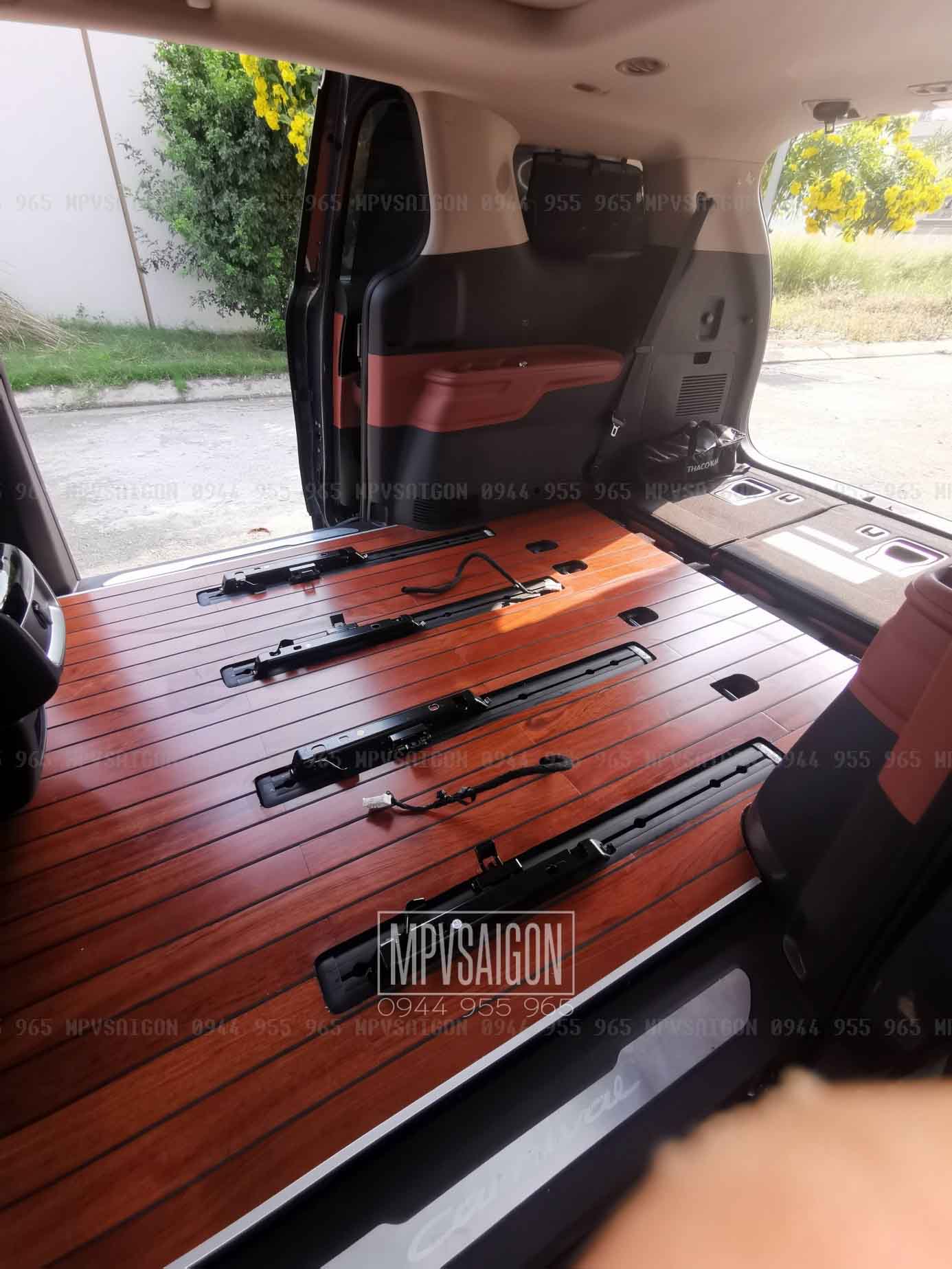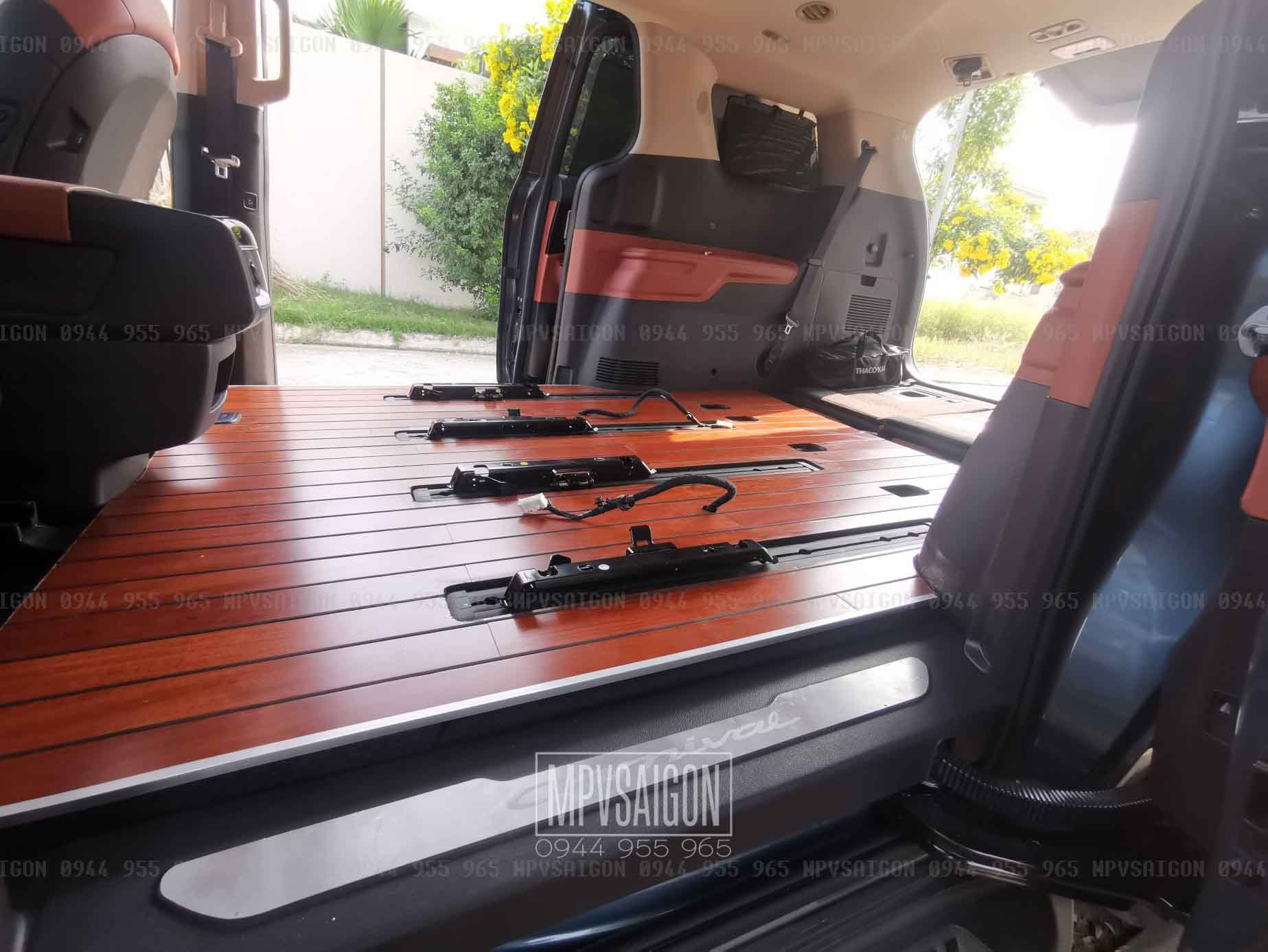 mpvsaigon hiện là xưởng độ xe, nâng cấp xe, nâng cấp nội thất hàng đầu, có rất nhiều kinh nghiệm trong việc xử lý sàn, nâng cấp lát sàn gỗ cho KIA CARNIVAL.