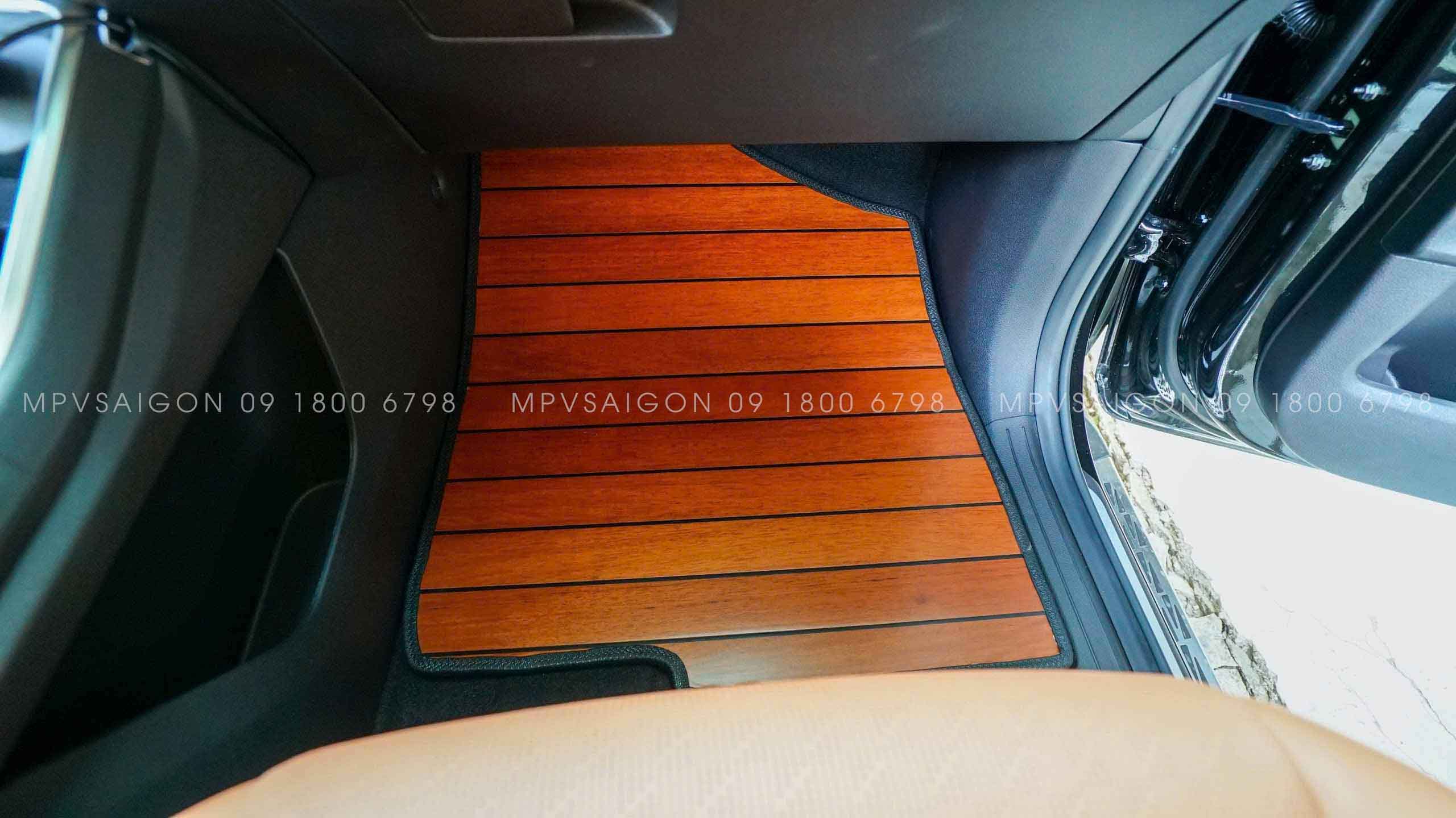 Chất liệu gỗ mpvsaigon sử dụng thường là tếch nam mỹ do đặc tính cực tốt để làm sàn xe: chống chịu nước, thời tiết tốt, không cong vênh, màu sắc và đường vân cực đẹp.