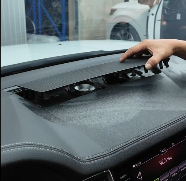 📍 Vị trí lắp đặt: Lắp đặt tại vị trí loa center nguyên bản trên Skoda Kodiaq – giữ nguyên thiết kế xe, không ảnh hưởng hệ thống điện Skoda Kodiag phục hồi loa center vị trí lỗ chờ sẵn STEG MS-30 3”MIDRANGE