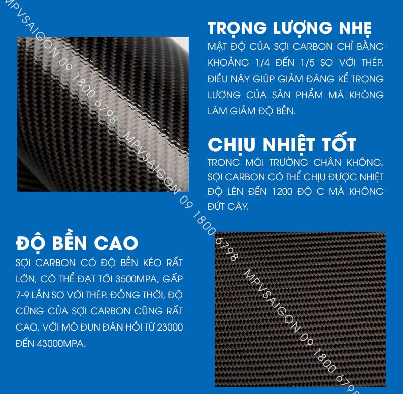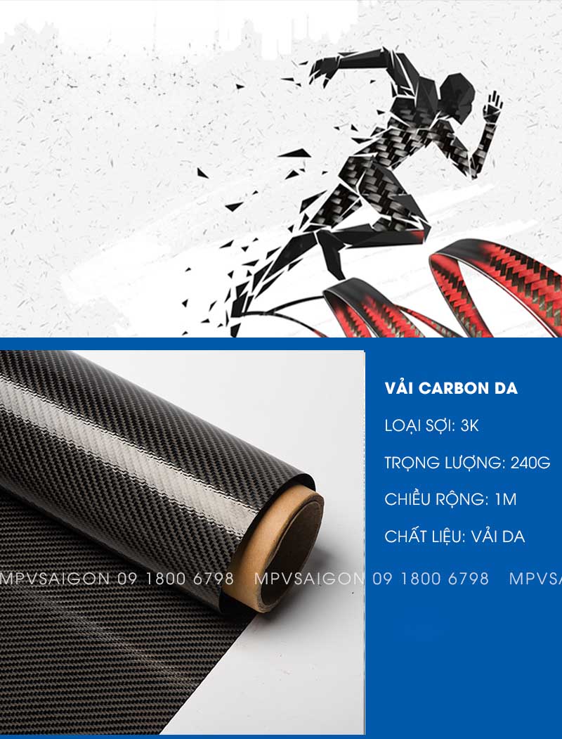 - Loại sợi: sợi carbon 3K