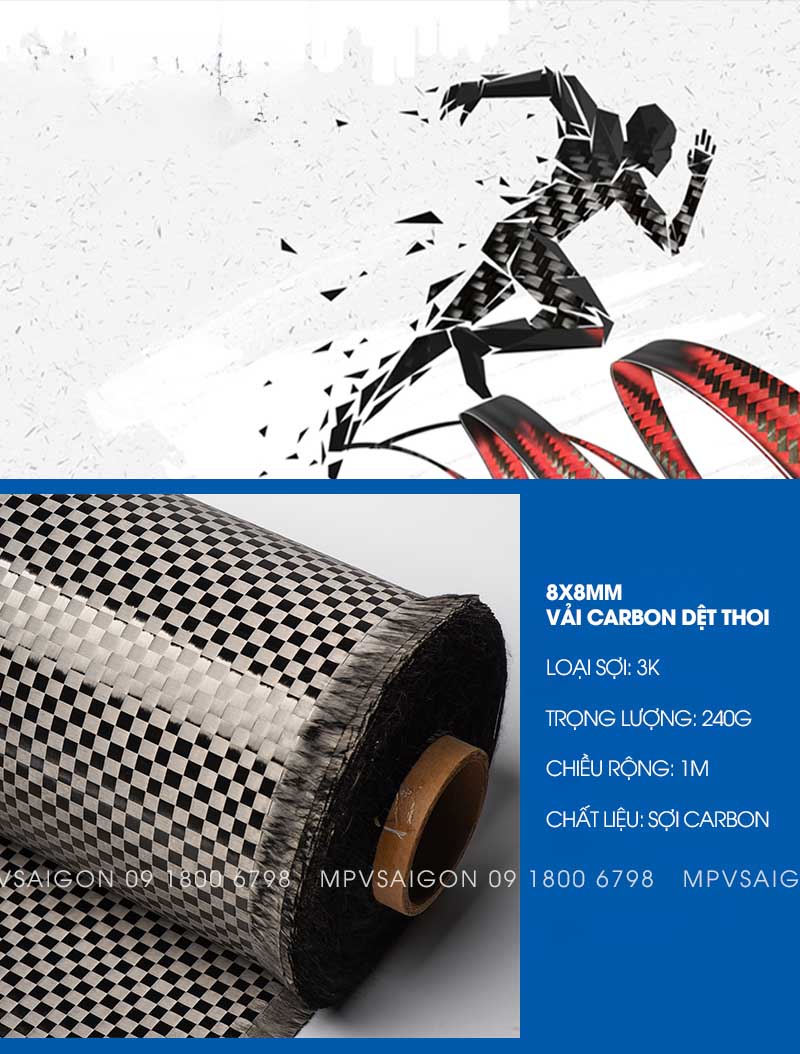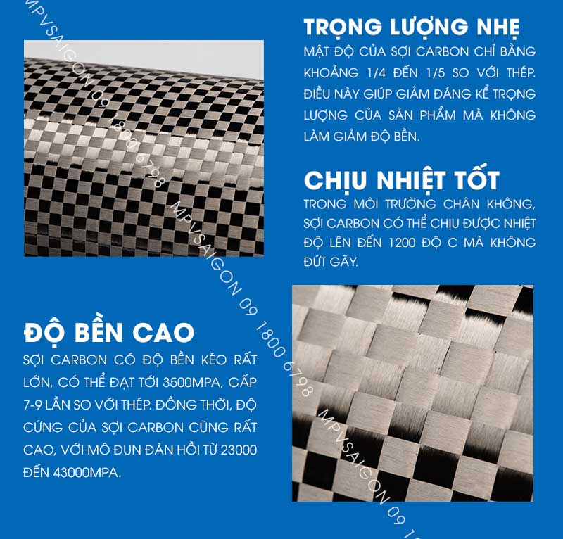 - Loại sợi: sợi carbon 3K