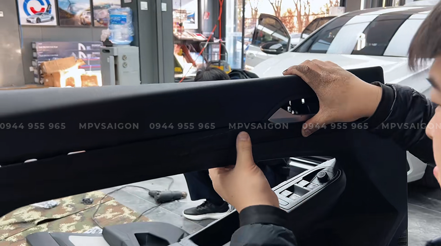 Toàn bộ công đoạn tháo tapi được thực hiện bằng dụng cụ chuyên dụng, đảm bảo không gãy ngàm, không ảnh hưởng đến hệ thống airbag hoặc cảm biến cửa – vốn là khu vực nhạy cảm trên các dòng xe Đức.