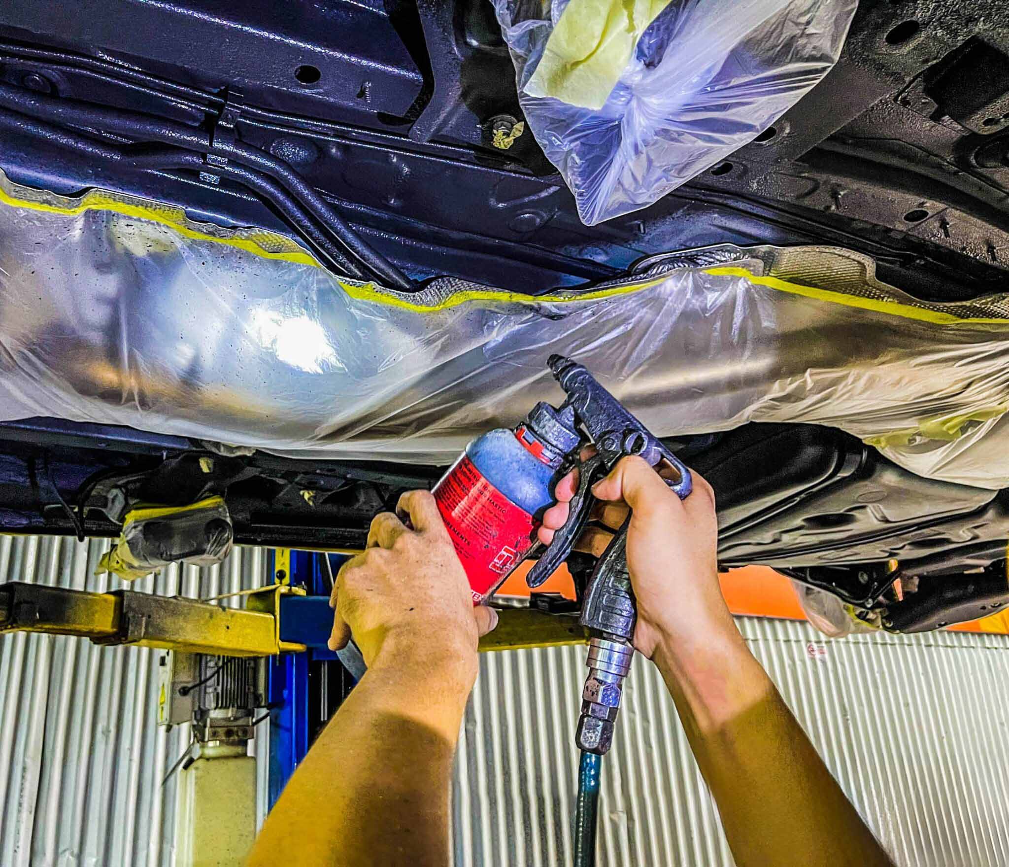 - Thi công lớp phủ gầm xe